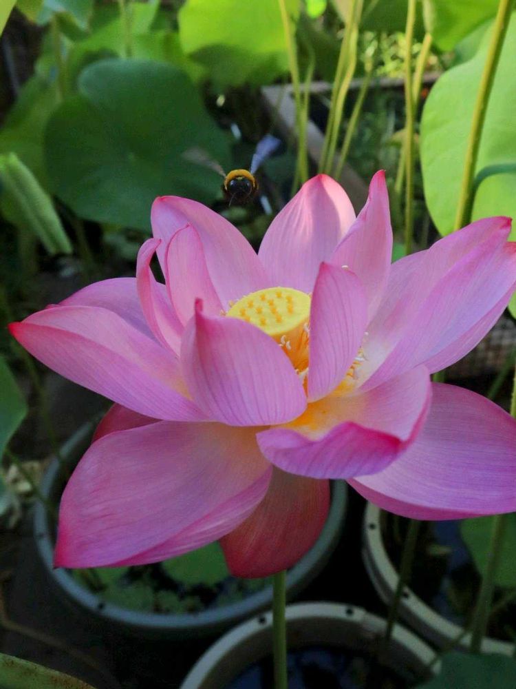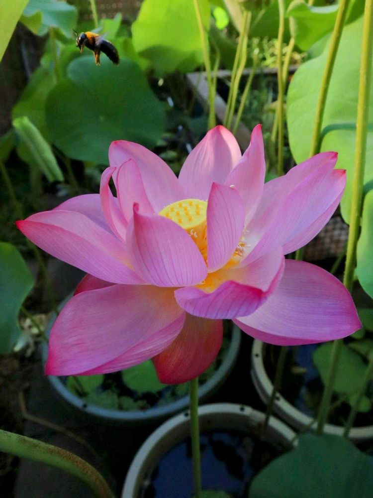 ハス「蜀紅蓮」か咲きました♪クマンバチかブーンって来ると一瞬焦ります(笑)