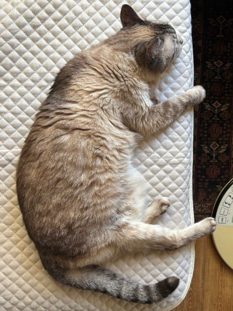 相変わらずシニアとは思えない美猫っぷりですね!お肉のつき方とかも良い感じです🥰💕ぴーさん家族みんなに大切にされて幸せですね✨🐱