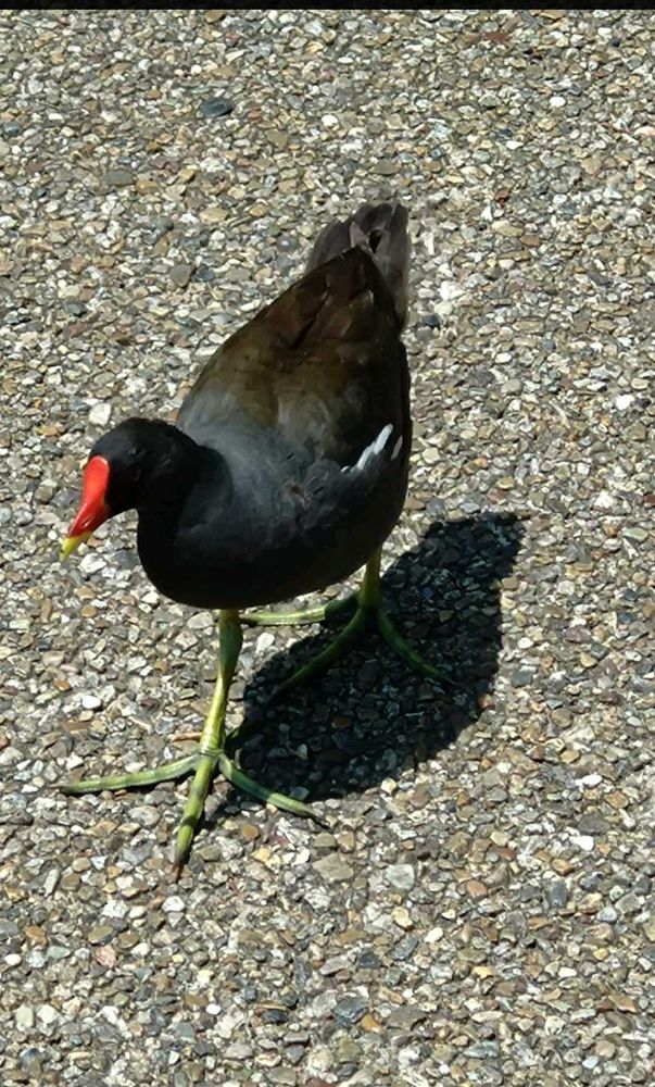 ❹いつも睡蓮の葉の上を歩いている飛べない鳥鷭(バン)が暑いコンクリートの上を歩いていました