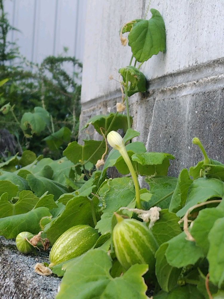 😳 ̖́-︎カラスウリが3個 暑さに負けないで大きくなって欲しいです👏👏