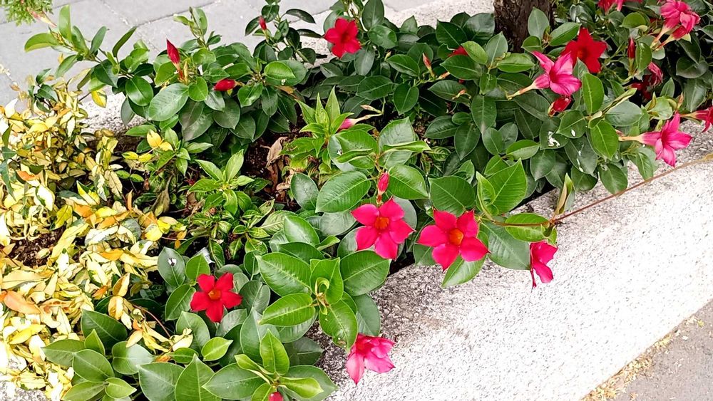 花や植え込みはあまりありませんが、商店街?にニチニチソウのような花が咲いていました🥰