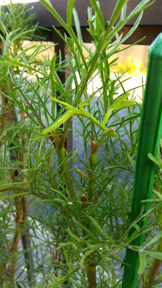 カマキリの事です。カマキリは以前キバナコスモスを植えていた時にも遊びにきていて花についた害虫をピンセットでつかみ従業員さんに与えました。従業員さんは花を荒らす事はせず虫を食べる益虫というジャンルに入ります私たち園芸をするものからしたら見方です☺️