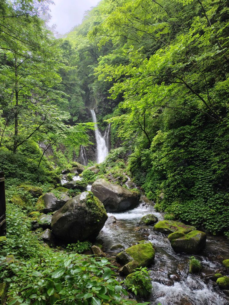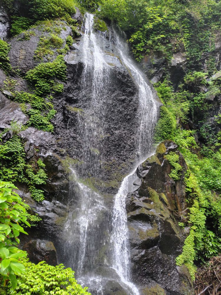 くま出没注意の看板を横目に頑張って滝まで歩くと、素晴らしい景色とタマガワホトトギスに出会えました。