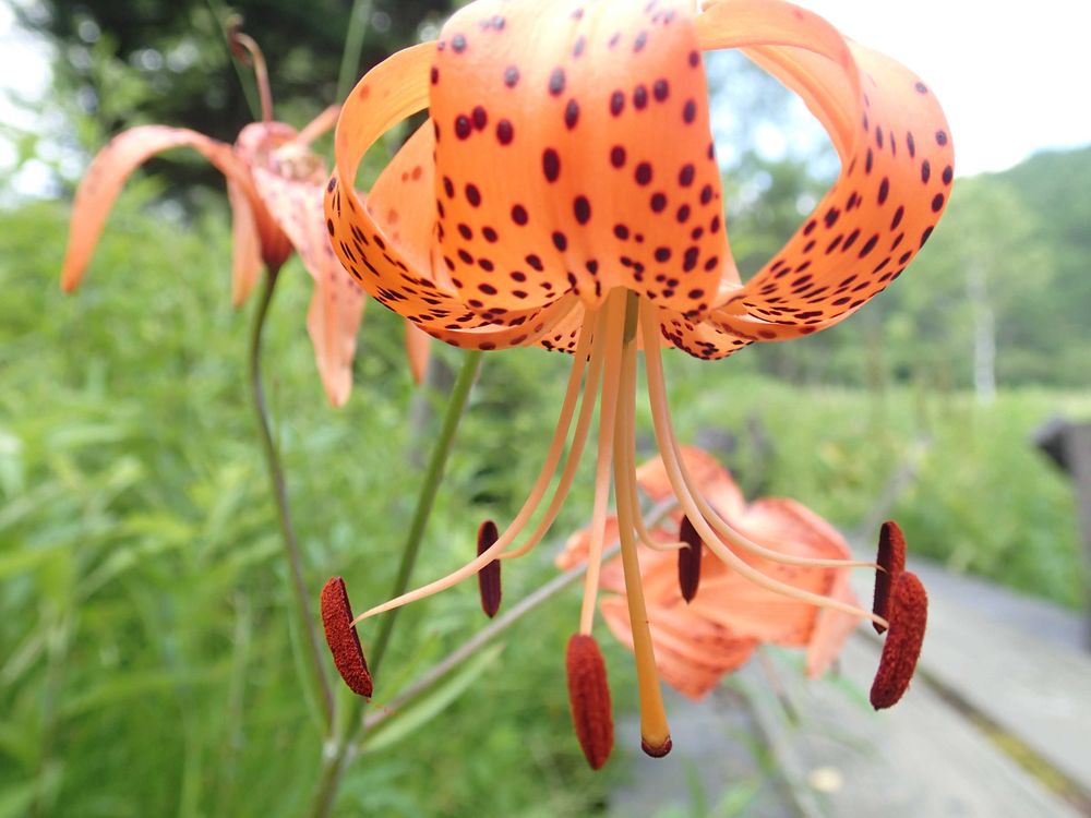 草原の中でポツリとオレンジ色の花が目立ちます。