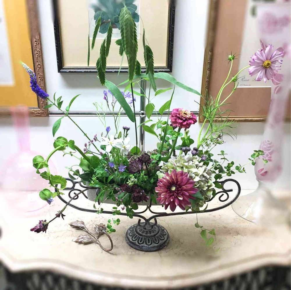 こういうアレンジもあるんだね、小さなお庭みたい😊秘密の花園かな😍