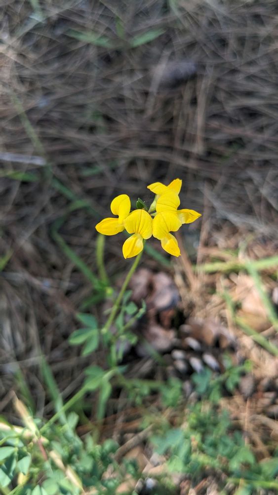 ミヤコグサです。海水浴場の近くにある松林に生えていました。遠くからでも黄色い花が目立ちます。