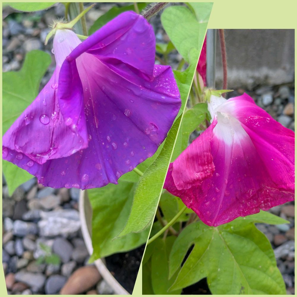 ②朝顔···先日のミルキーウェイとは別の種類だけど名前がわかりません💜♥とにかく大きくて雨に濡れしなだれちゃった💦
