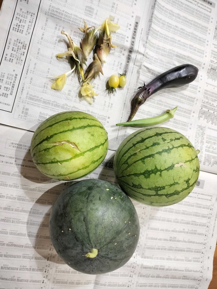 昨日収穫したスイカが美味しかったので割れる前に収穫しました。