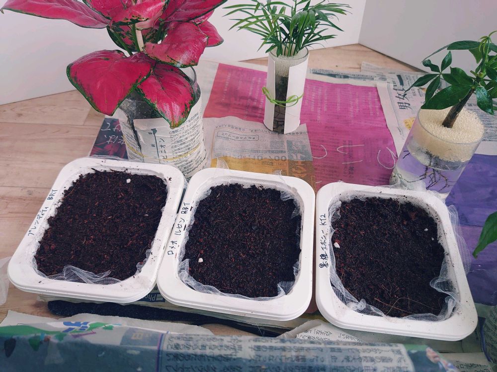 ガジュマルと同じく、食品トレーのリサイクルだけど、良い感じに腰水できてる感じ。