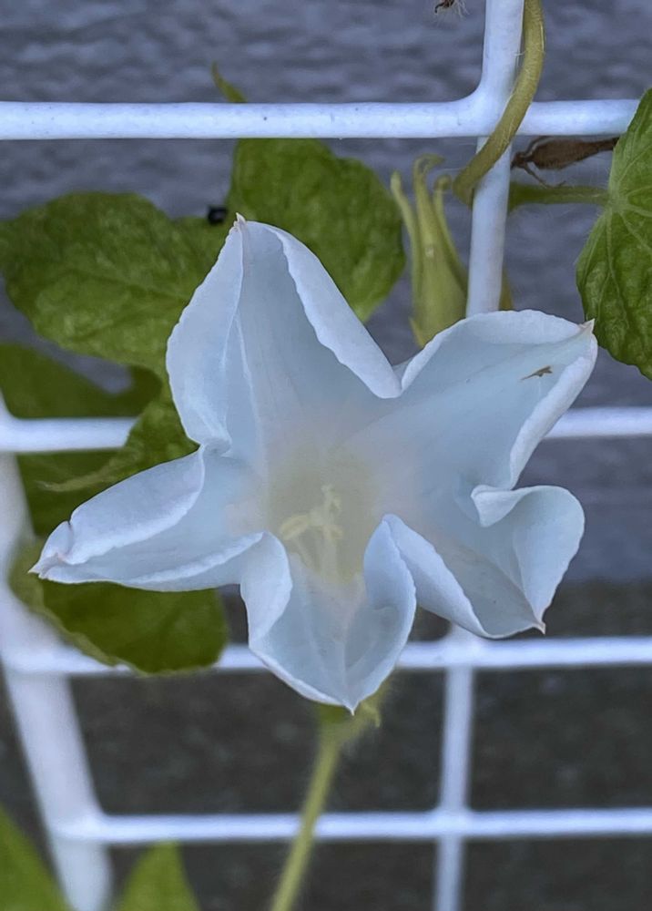 今朝の庭からは、今朝も咲いてくれた変化朝顔。昨日は真っ白なお花でしたが、今日は薄っすら水色。爽やかです😊🍀💕