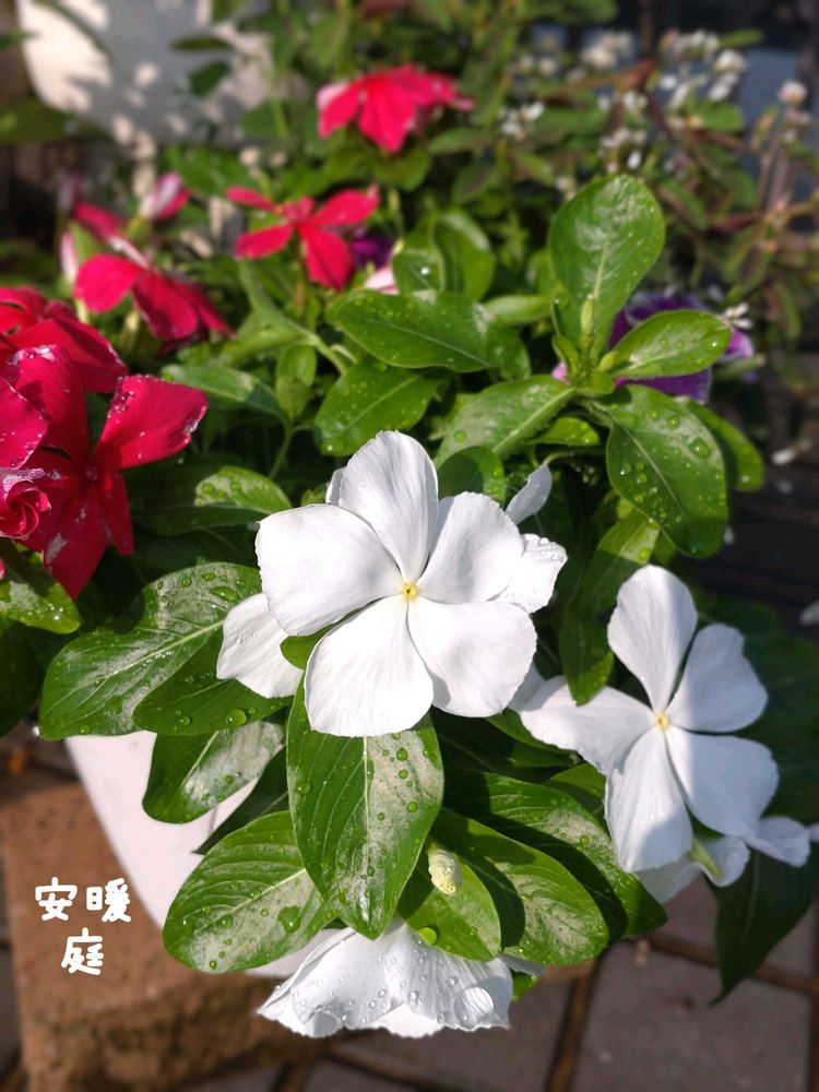 ニチニチソウは、中心部が白くて、淵の方が赤紫だったかな?!