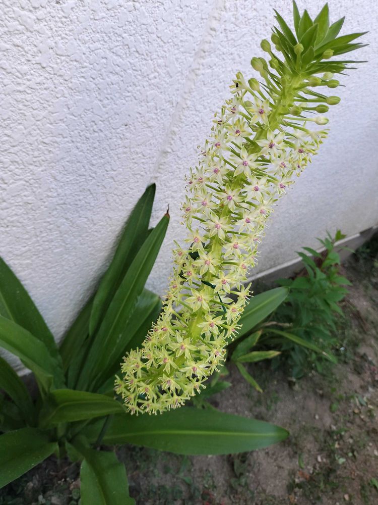 3️⃣家の西側と塀の隙間に植えたパイナップルリリー🍍