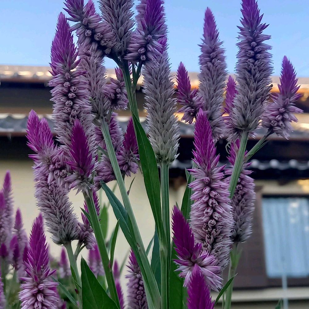 ノゲイトウ セロシアが青空を突くように咲いています。この暑さのなかでも全くヘッチャラな様子です!