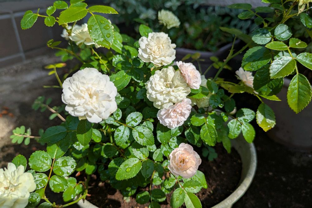 連日暑さは続いていますが、薔薇は元気に繰り返し咲いてくれて元気をもらえます🩷🤍