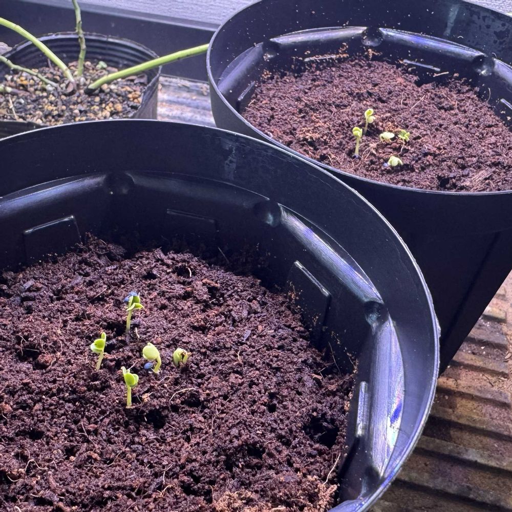 一昨日まいたばかりなのにすでに発芽してる。すごい。