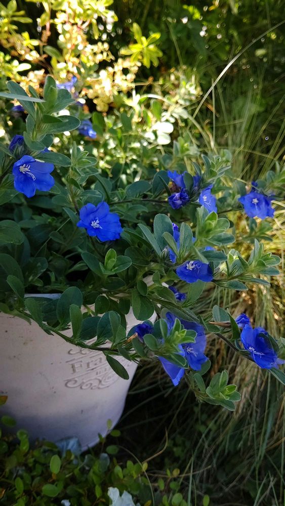 エボルブルス は 夏の暑さに強く 鉢いっぱいにブルーのお花が咲いてくれるそうです 宿根草なので 今年は 無理そうなので 来年🙆枯らさないよう頑張ります😄