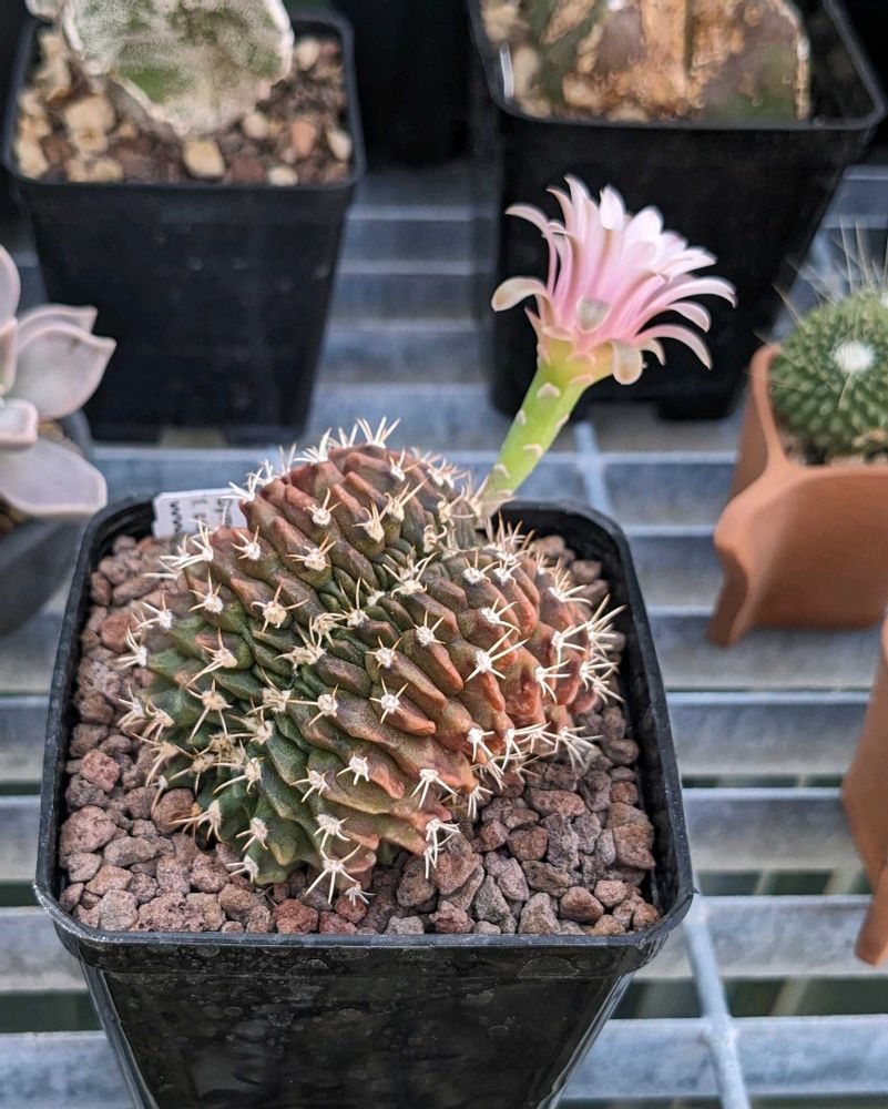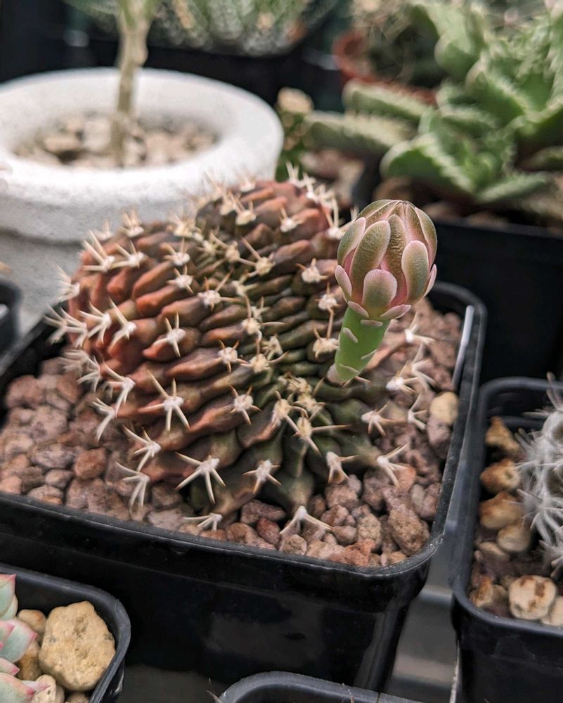 このサボテンは綴化(セッカ)といって、成長点が帯状に複数ある株で、複雑で面白い形に成長します。健全な成長点が1つの株とは同じ種類でも全く別物のような形になります。サボテンだけじゃなくてエケベリアとか多肉植物には結構よくあります。