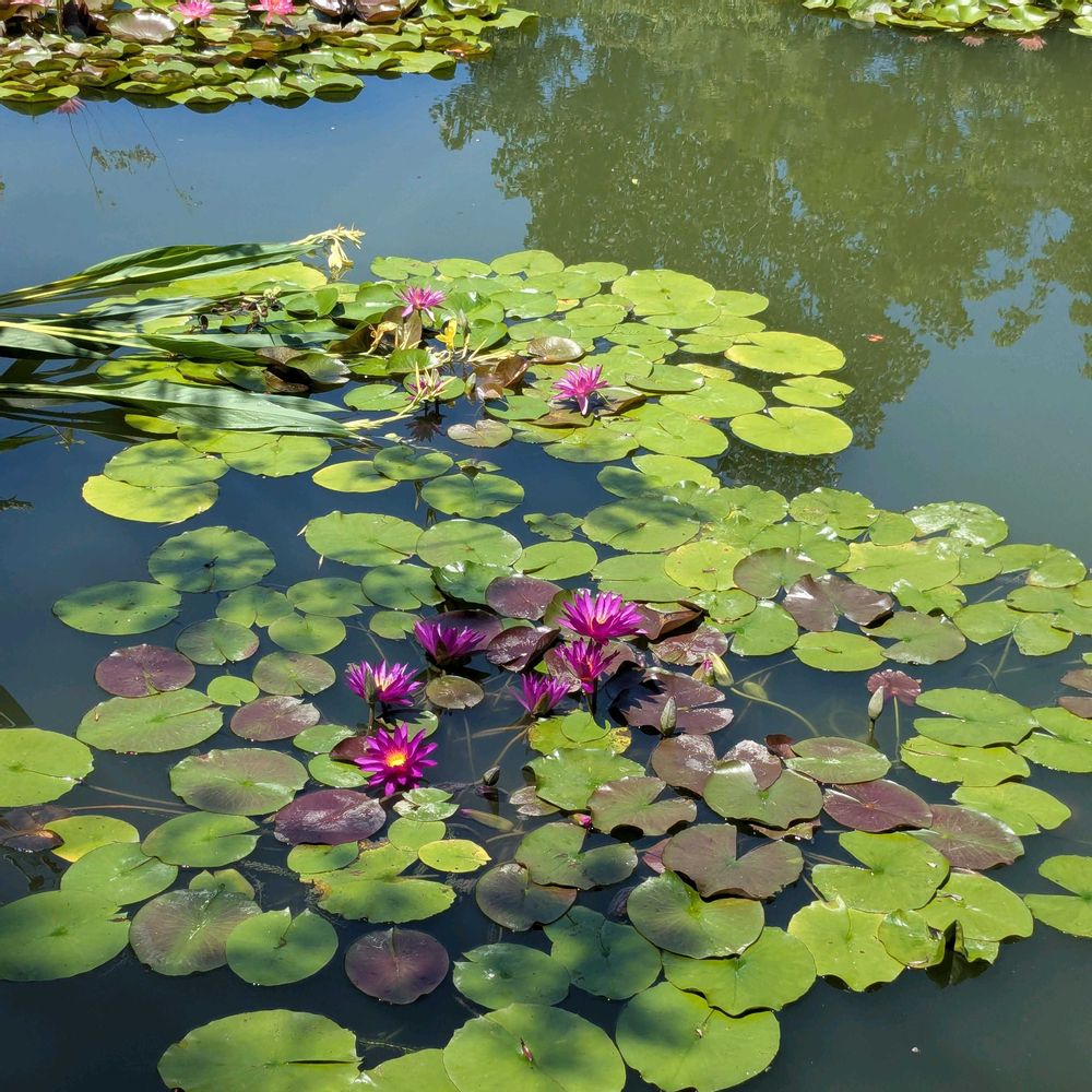 ハゲイトウとギボウシと、さくらちゃんです😄最後は、睡蓮の咲く池です😄日陰でも、暑い日でした😄