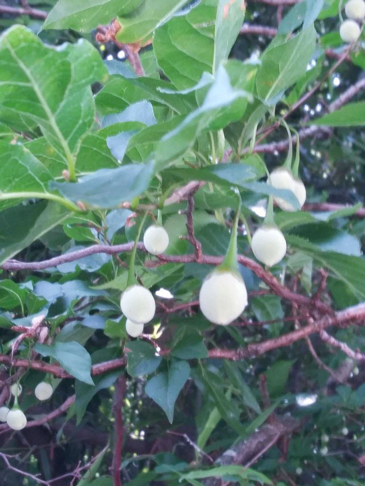 ②③ エゴノキの実が水不足の為か、もう実がパックリ割れてました😑