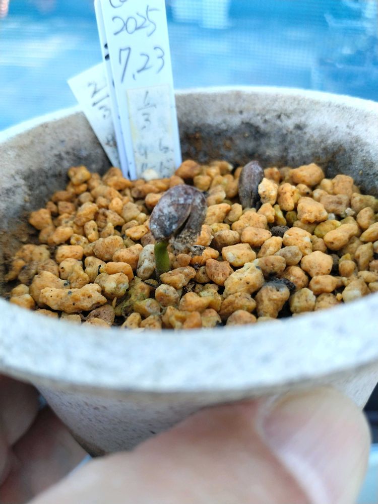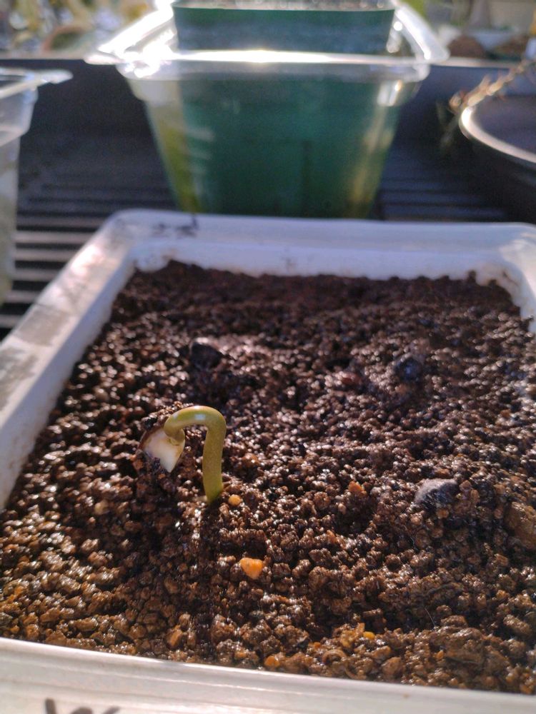 1枚目、7/20に投稿していた水を吸って膨らんでくれなかった種4粒。一つだけ🌱