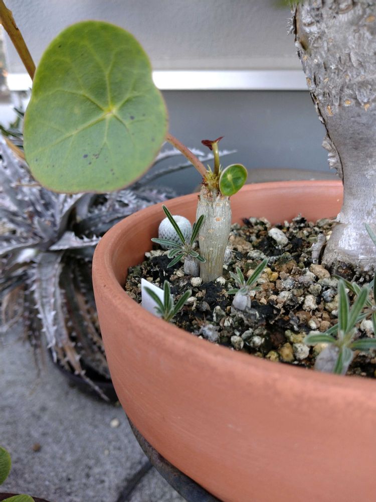 5枚目、サンゴアブラギリの鉢にいつの間にか生えてきたサンゴアブラギリの子🌱