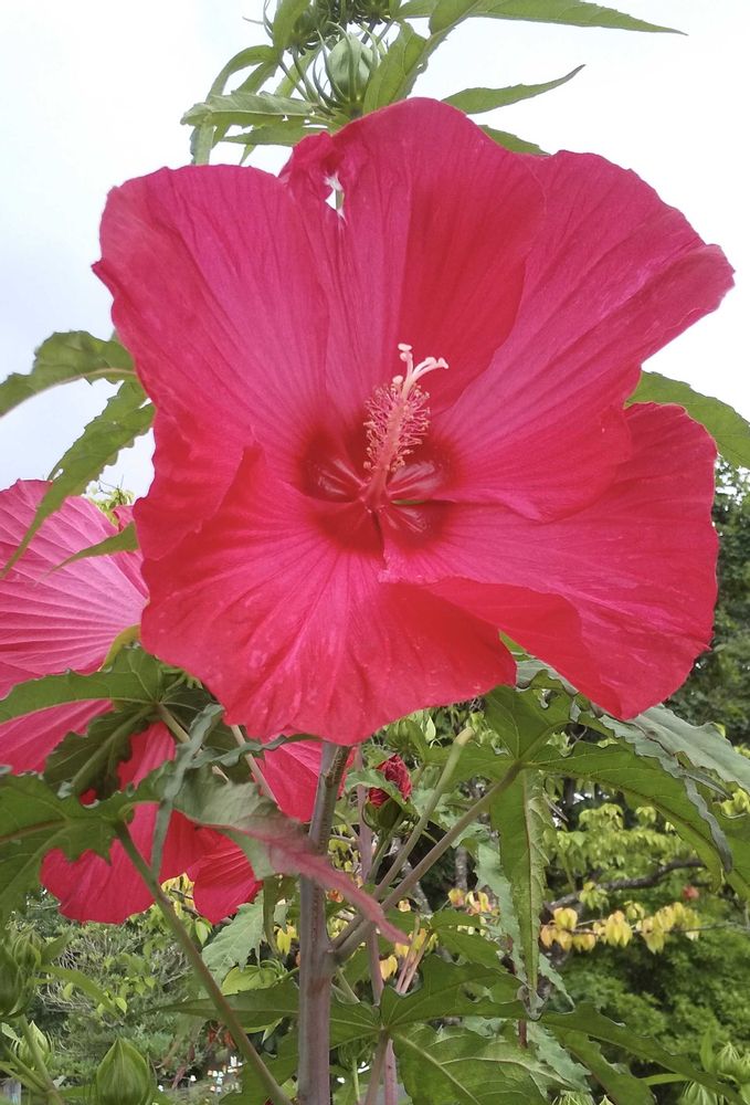タチアオイは、アオイ科タチアオイ属の多年草です。タイタンビカスは、アオイ科フヨウ属(フヨウと同様)です。🤔😊👍