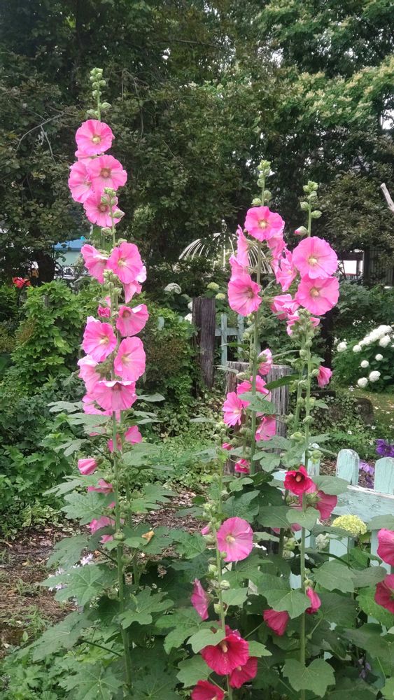 食事に行ったレストランの庭に咲いていた今日のお花 タチアオイ(立葵)です。