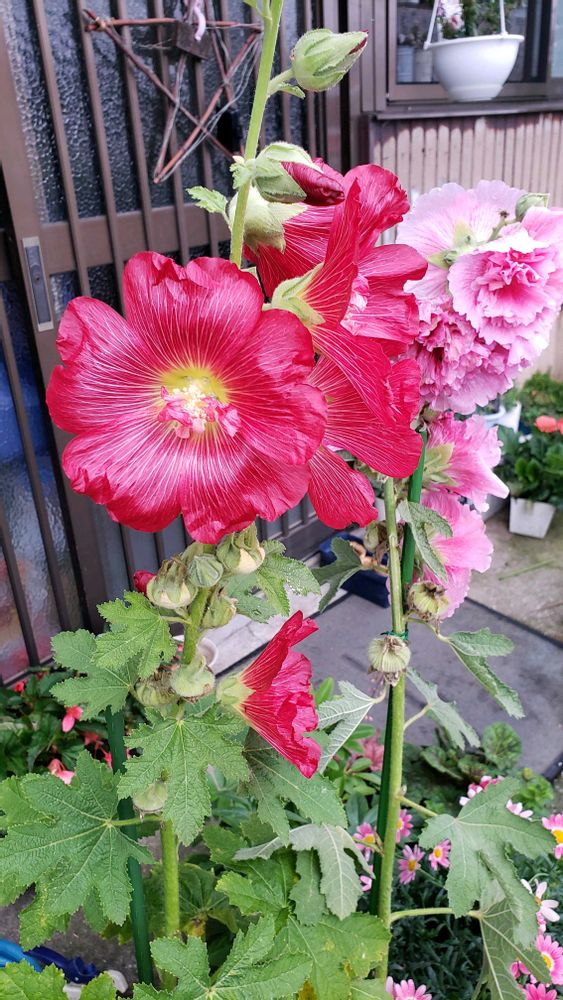 このタチアオイ去年植えてたのが咲かなくて今年咲いたの🤭