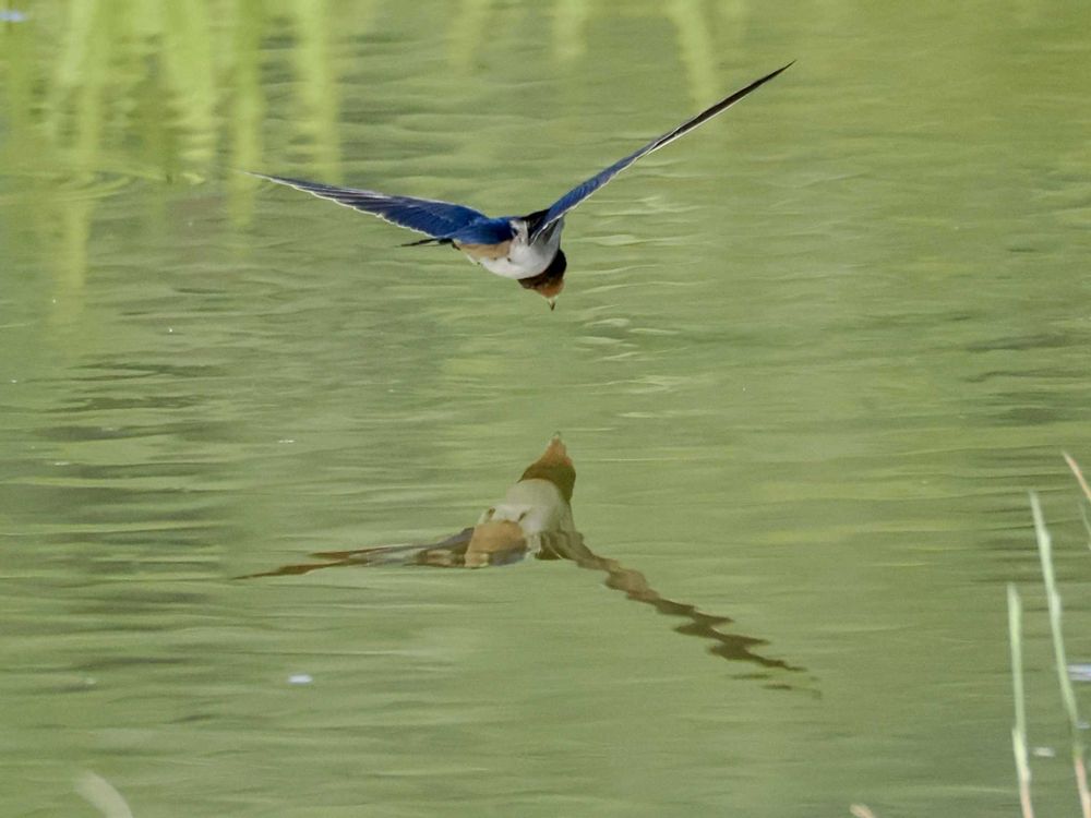 水を飲みに来たツバメちゃんは、飛びながら、すくうように飲むのでしょうか?