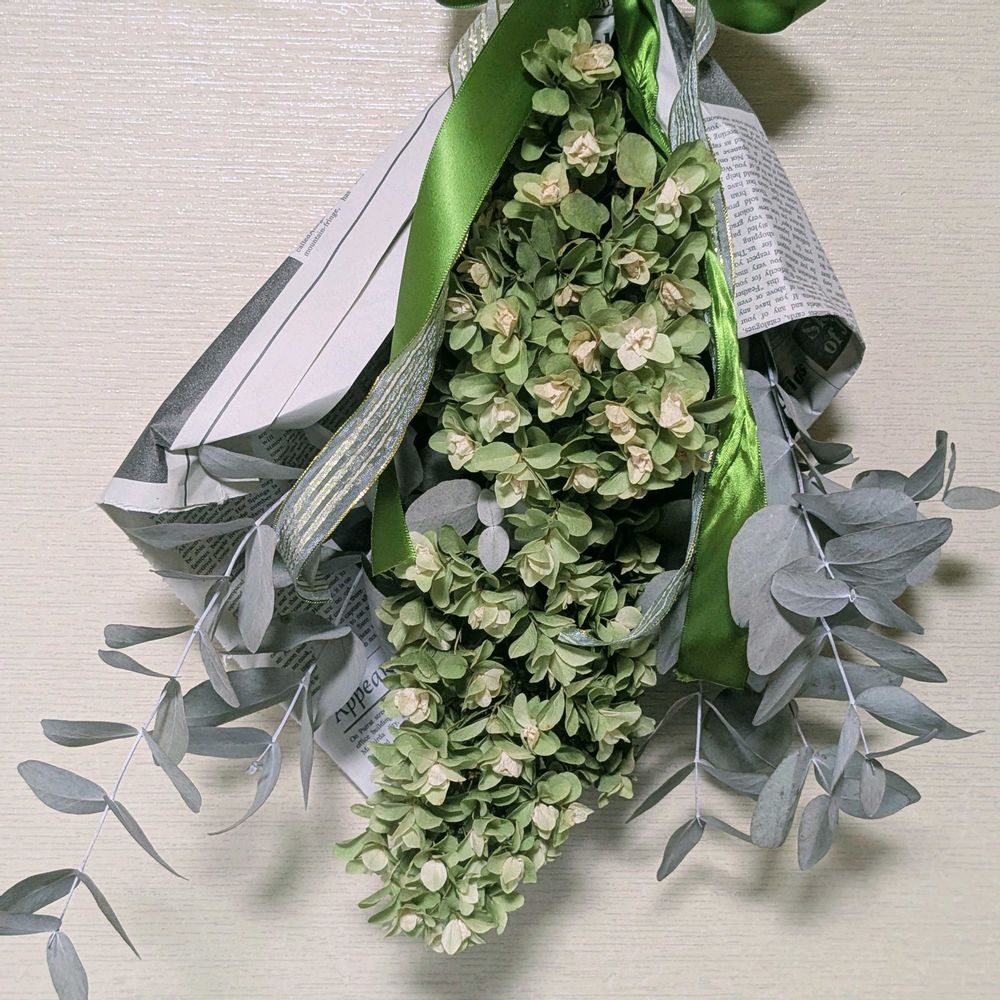 今年のアナベル&柏葉紫陽花ドライが完成したので…グリーン系💚🌿のスワッグ作ってみた。