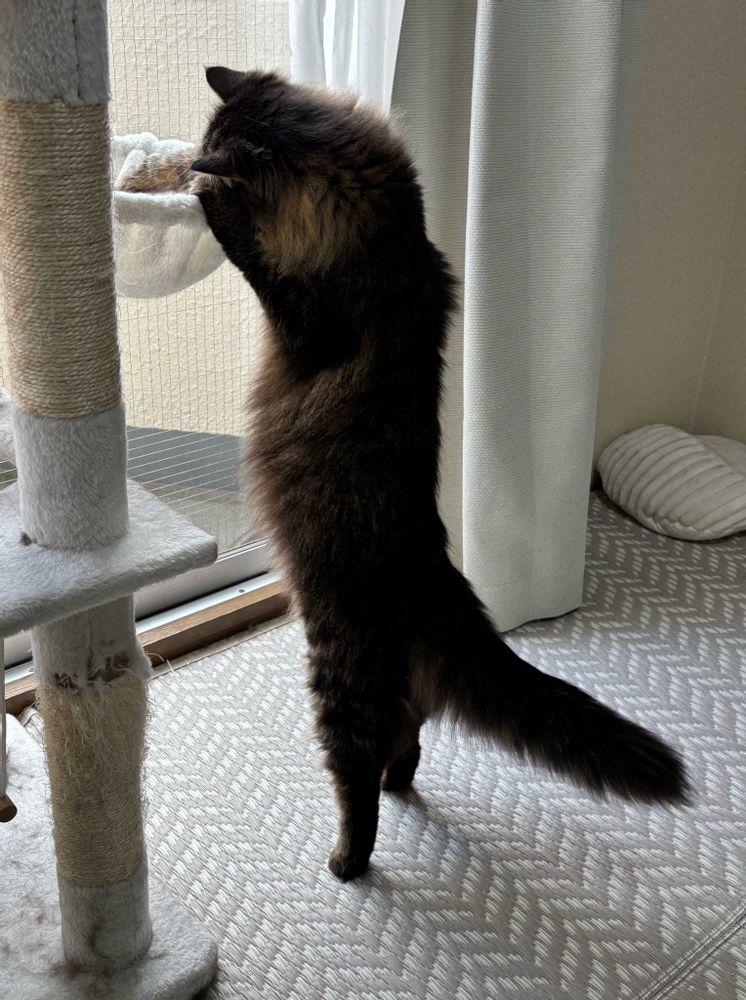 保護猫Sistersの尻尾は、長くて毛むくじゃらです。よく見ないとどっちか分からなくなります💦