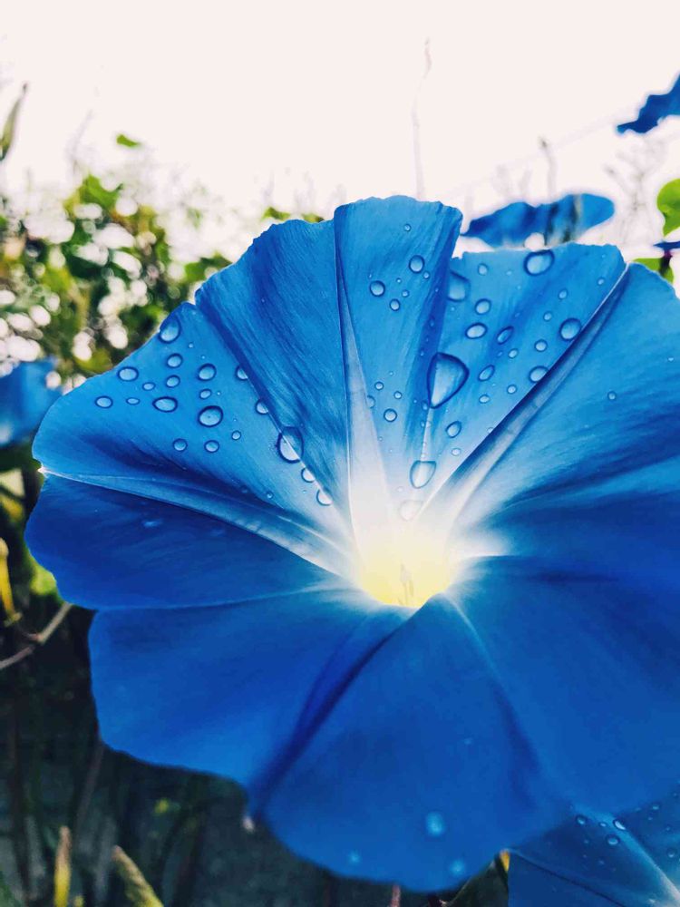 今朝の雨で花の裏についた雫が花弁に透けてとても綺麗でした。でもなんだか悲しいブルーです。
