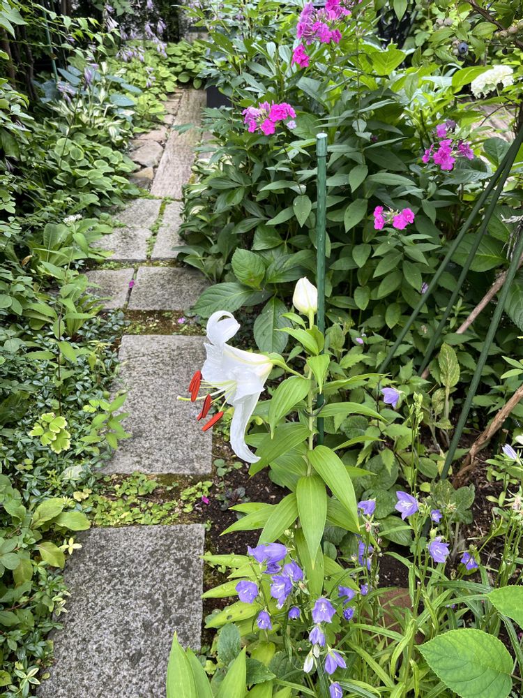 毎年美しい花を咲かせてくれるカサブランカ 昨日まで蕾だったのに 真夏の庭 残った花が小道を彩ってくれてます スライドして下さいね