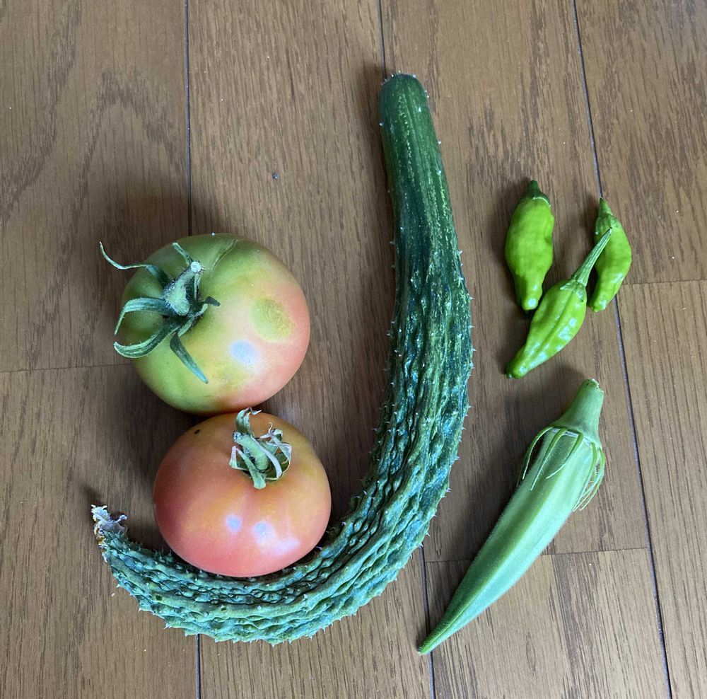 トマトはまだ赤くなってないけど、裂果する前に収穫しました♪