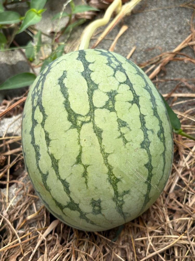 今年初めて小玉スイカ🍉苗植えて3玉育っています