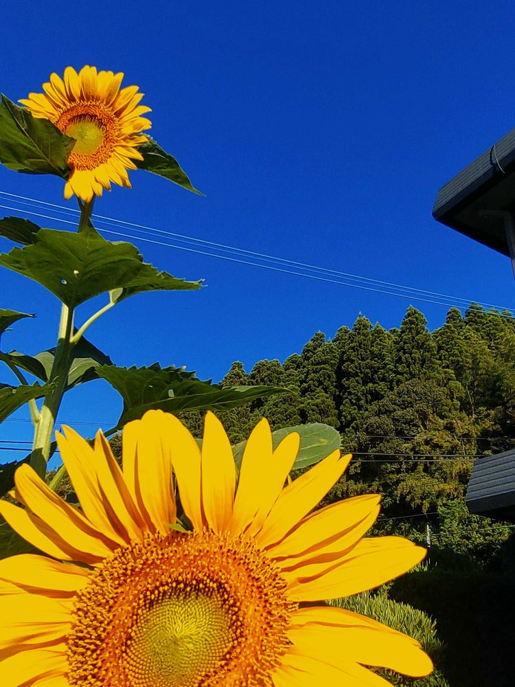 蒼い空の色と向日葵の色がとってもとっても鮮やかさですよね!