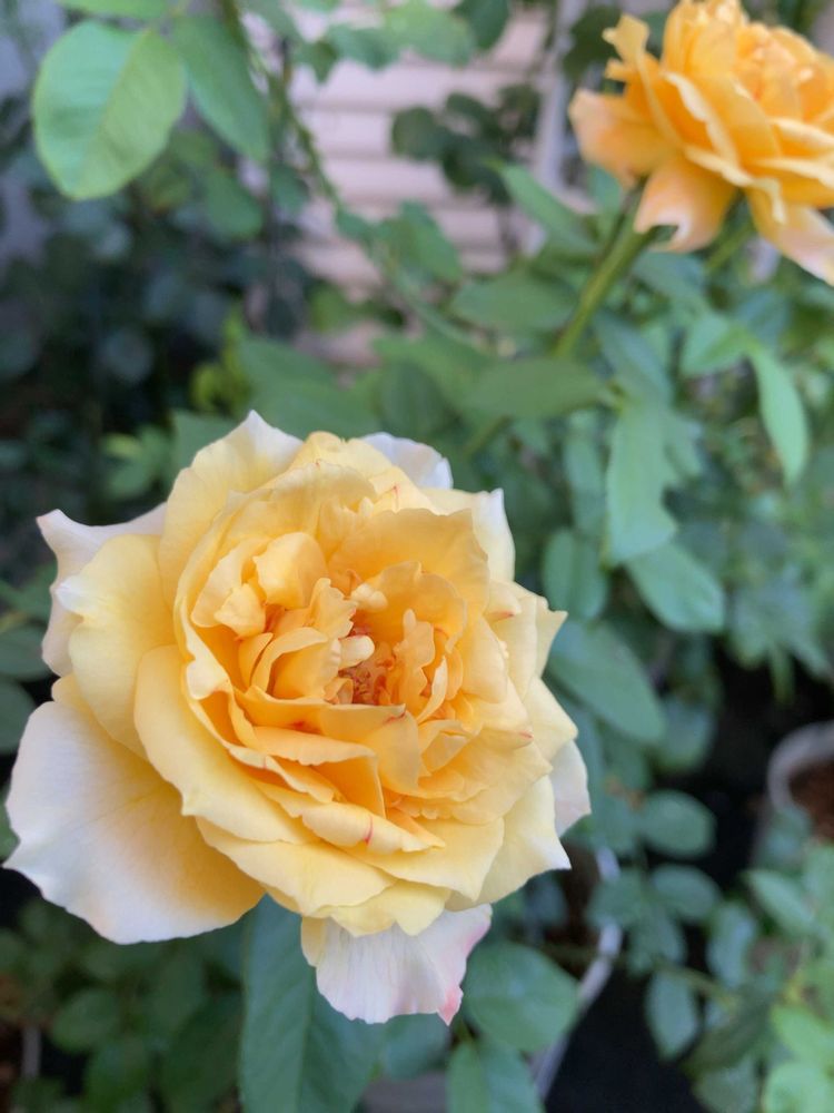 風が強いとき、蕾や花が咲いている時も水を欲しがるので水切れに注意です⚠️枝先が項垂れているときは夕方も鉢の温度を下げる目的もあり水やりと葉水をします(夜に濡れているのは黒星になると言われますがこの時期は日も長く日没までには乾きますので^ ^)