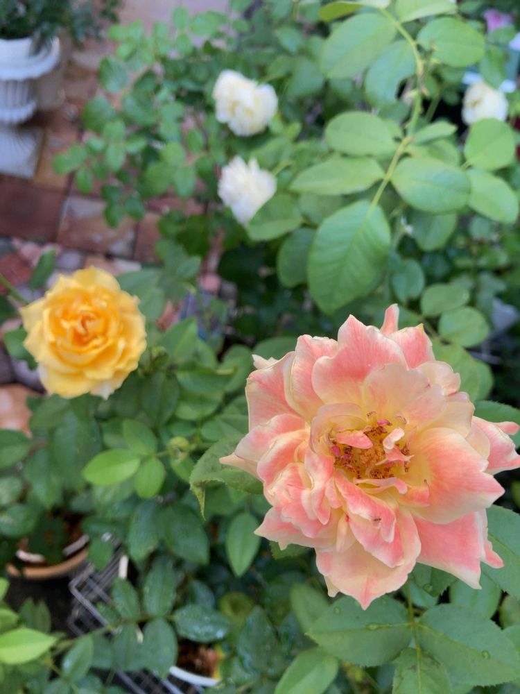 秋まではバラも私たちも暑さ対策をして辛抱ですね😌
