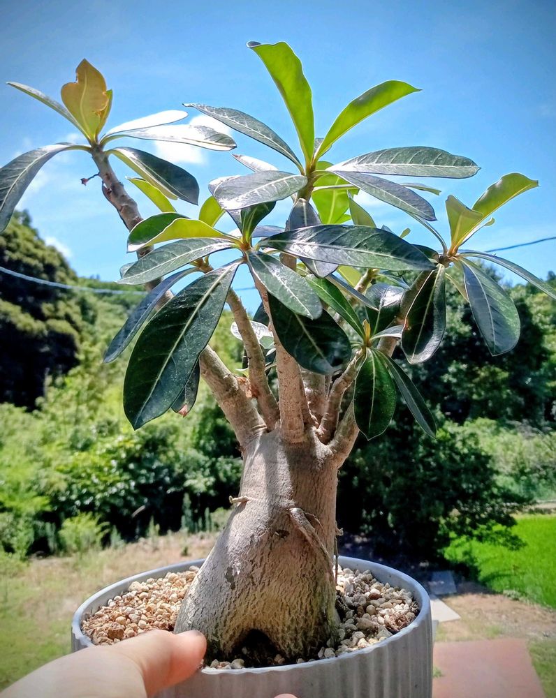 この青空を喜んでいるアデニウムちゃん1号🤩⤴️⤴️⤴️今年も花は咲かないが(笑)それでも良いんだぁい💦💦