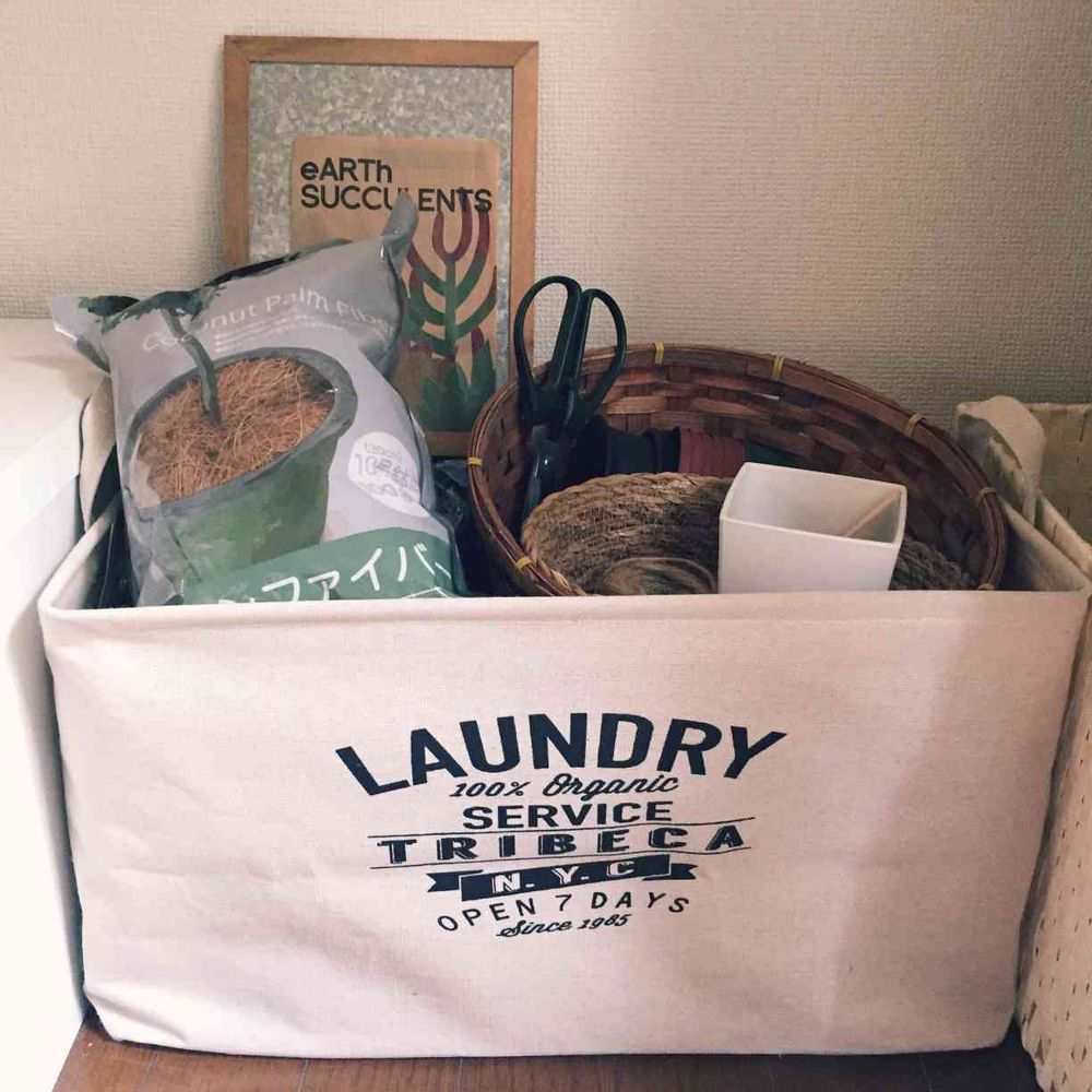 雑多に散らかってた庭いじりグッズをDAISOのlaundrybagに詰め込みました☺︎