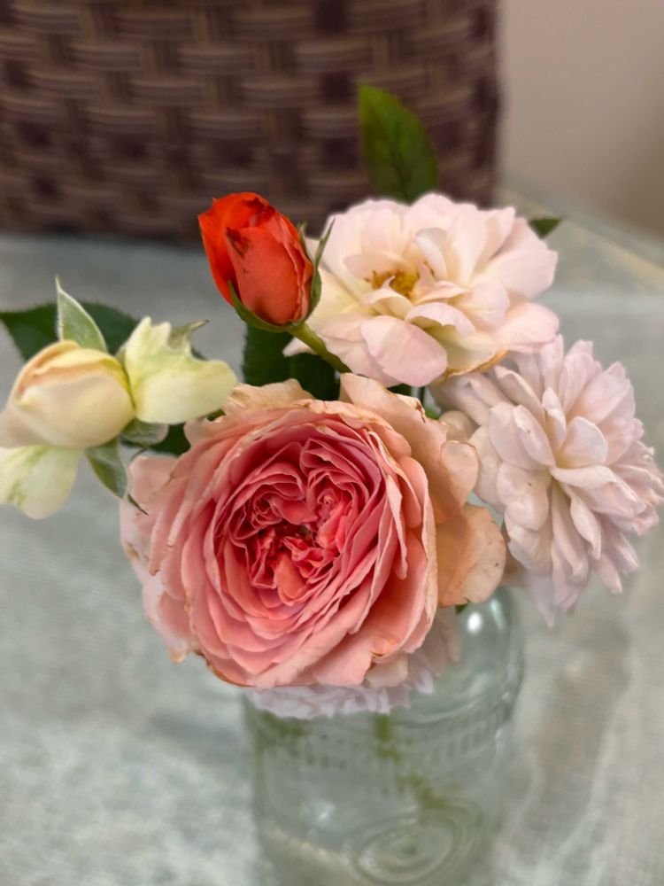 1.2. それでも咲うとする薔薇 固い蕾で切って 部屋で咲かしています
