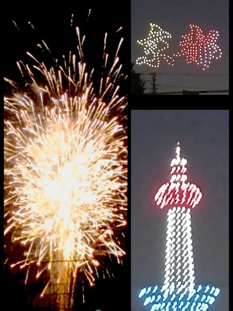 いつからか花火の前にドローンのアトラクションもあって 近辺のみならず 人が増えました♥️