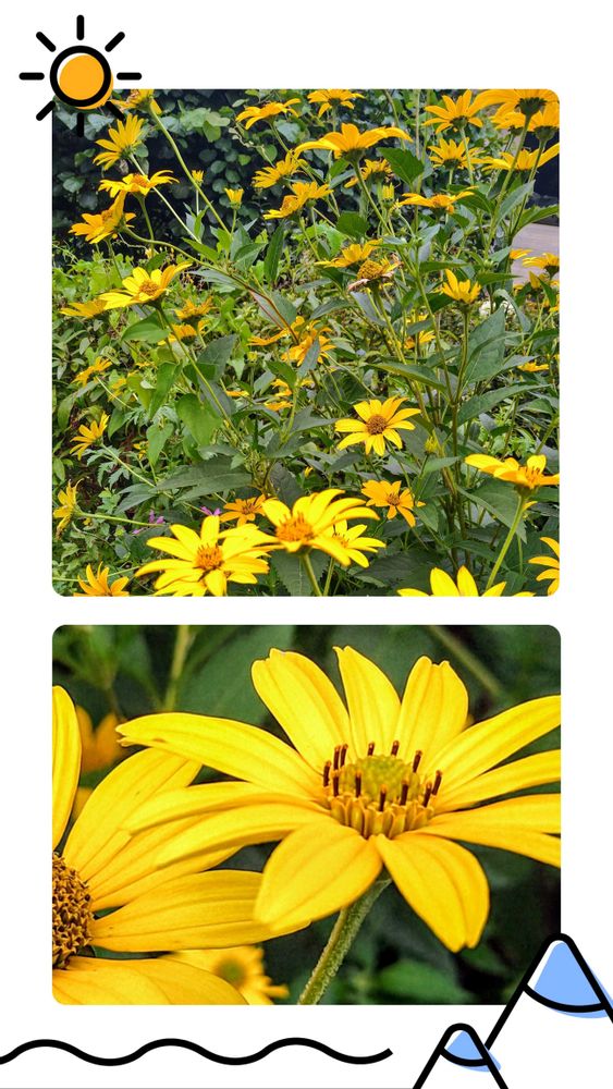 ③ こぼれ種でも増えて、あちこちに出現している姫ヒマワリ🌻