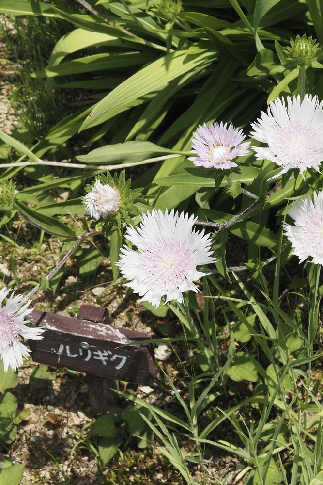 ①名札にはルリギク。②③青色も咲いていました。④オイラのカメラ、白花が苦手だナ。⑤全体の感じです。