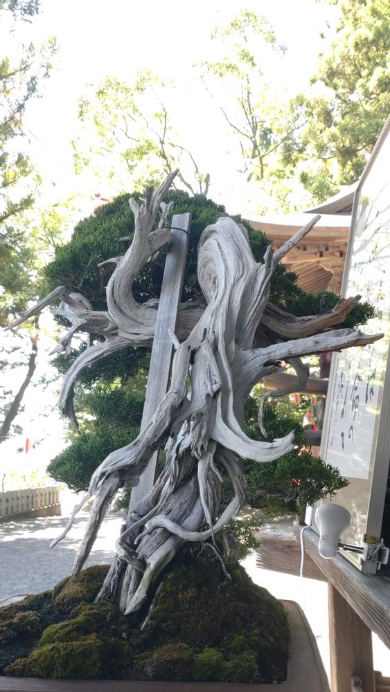 しんぱく(芯白)?たしか 幹の内が白く枯れて美しく映えた状態とか むかし何かで読んだ気が……これ 幹ぜんぶ白‼️どんだけ古木! 分からないけど 将来は国宝?