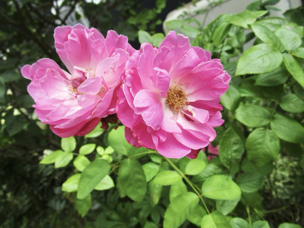 ②ピンクの薔薇も暑さ真っ盛りなのに咲いてくれて健気