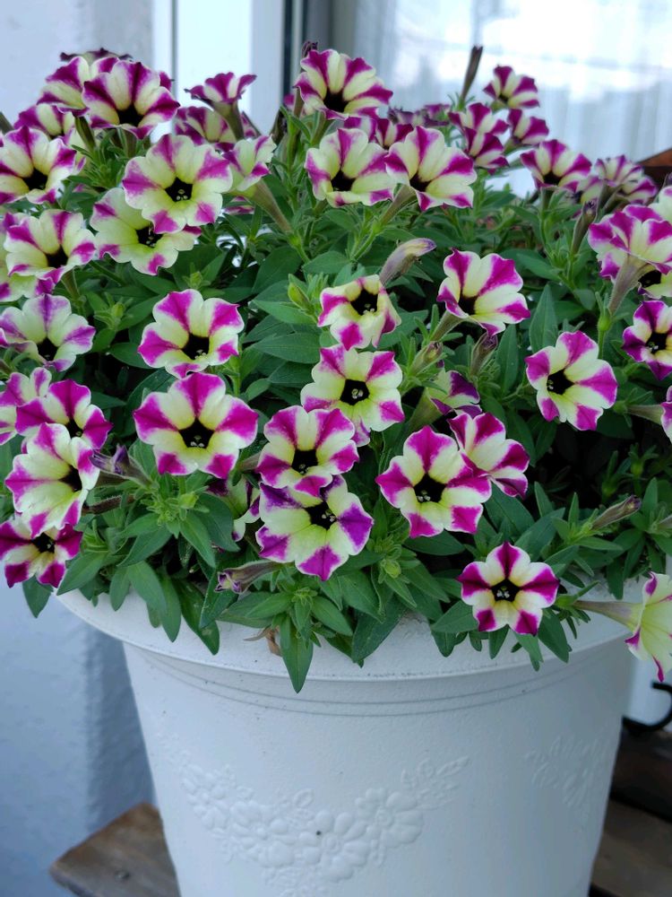 灼熱のベランダで枯れそうなお花もチラホラ出て来てる中でスーパーチュニアは全く勢い変わらずです🥰