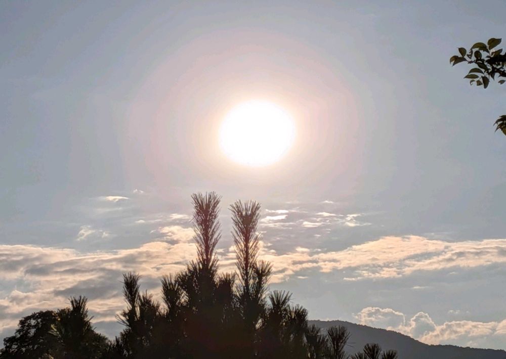 毎夕おんなじ夕暮れ写真になってしまいますが 椅子に座ってこの時間を楽しみにしています でも未だ暑いし眩しい! お陰様でここは海無し県で少し高くもあるし大事件も無く幸せなことと思っています🙆