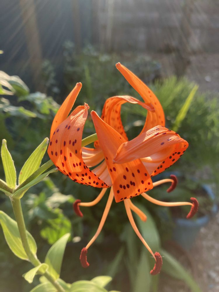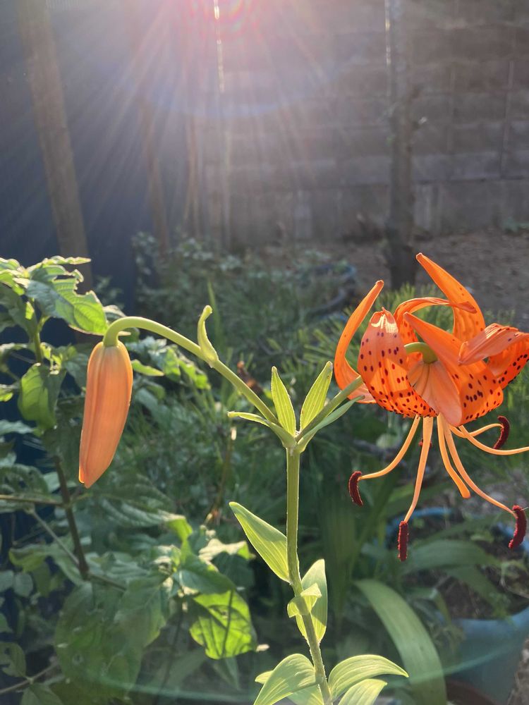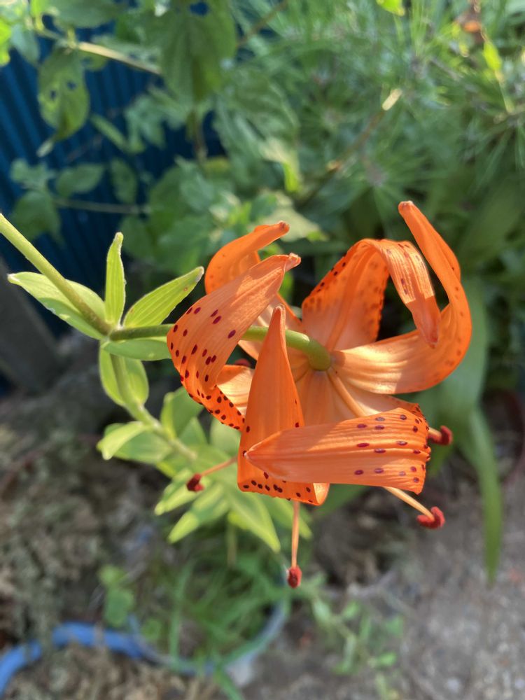 家の庭に咲き始めたオニユリ🧡濃いオレンジの花弁に個性的な花姿✨