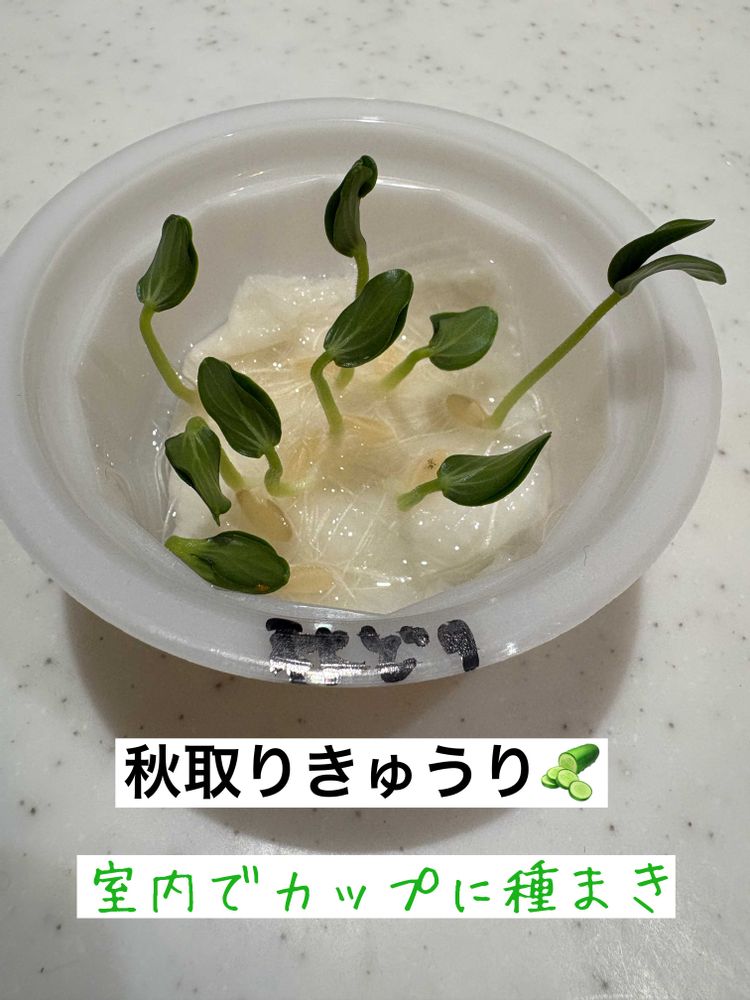 室内であっという間に発芽して生長(4日目)🥒そろそろポットに植え替え。